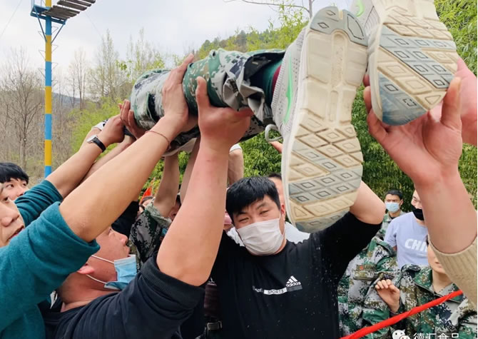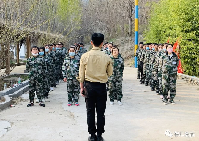 为进一步提升企业执行力,提升员工责任意识,强化队伍凝聚力、向心力,加强员工的相互沟通交流。4月7日,德汇食品团队进行了为期两天一夜的军事化拓展训练。